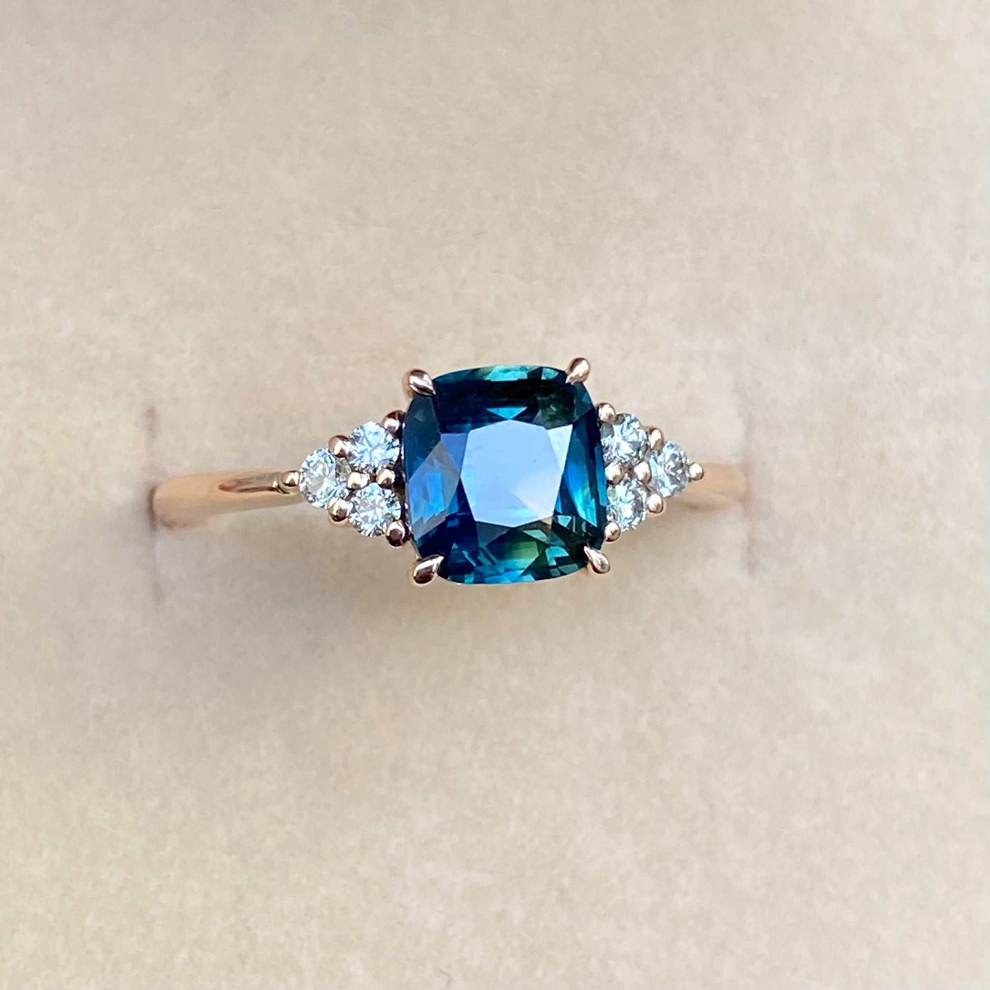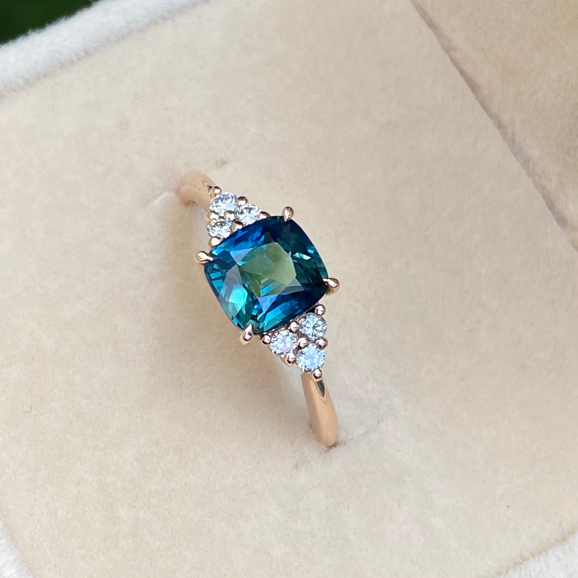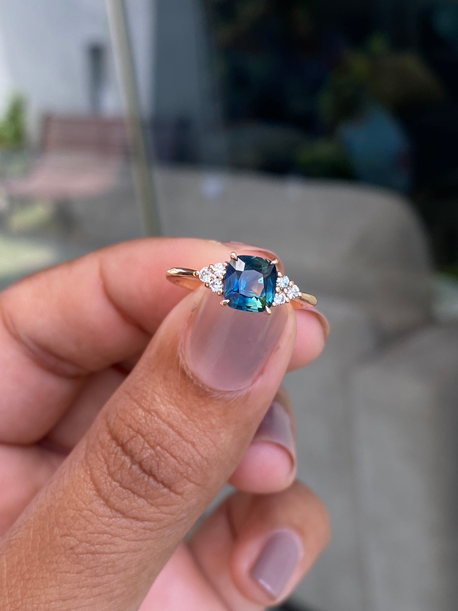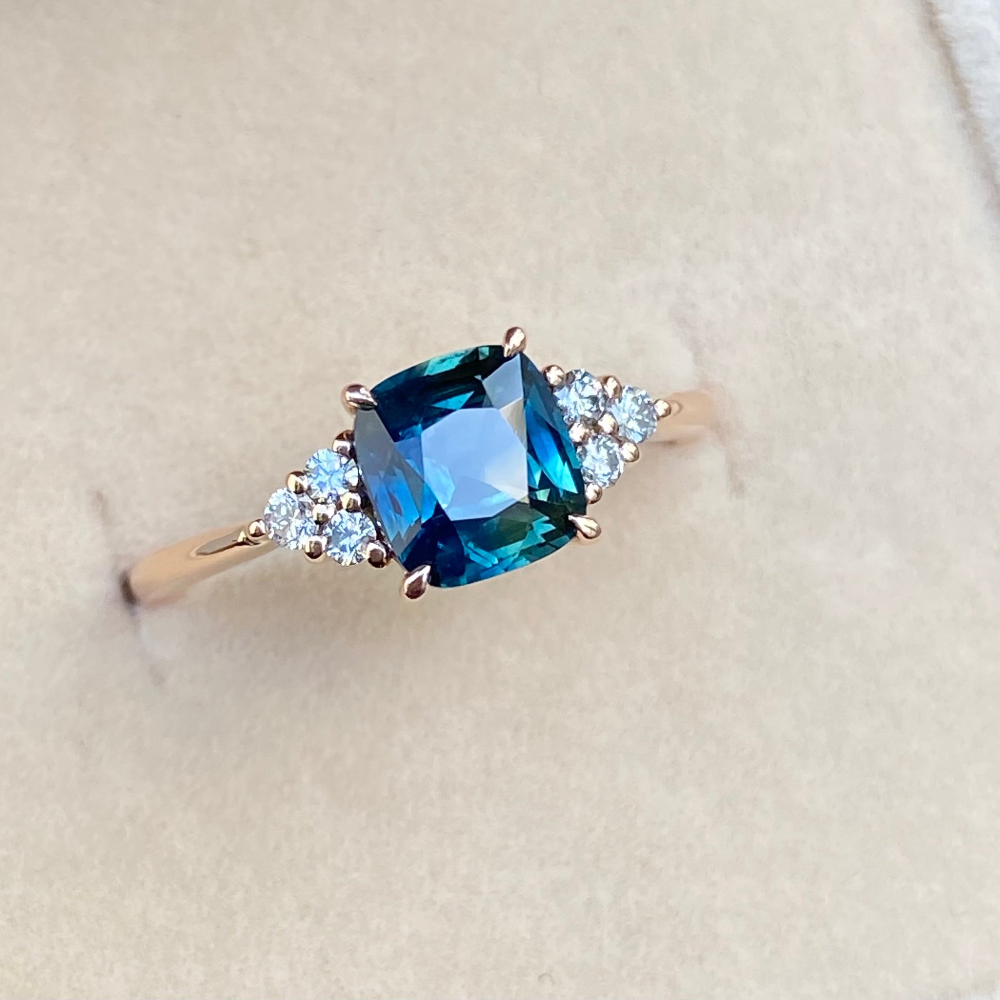 1.50 ct unheated Teal sapphire Ring , Cushion Cut Teal Sapphire Engagement Ring,