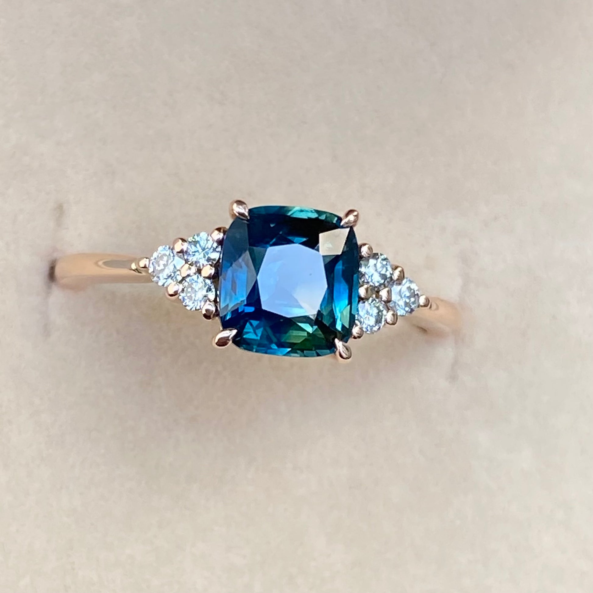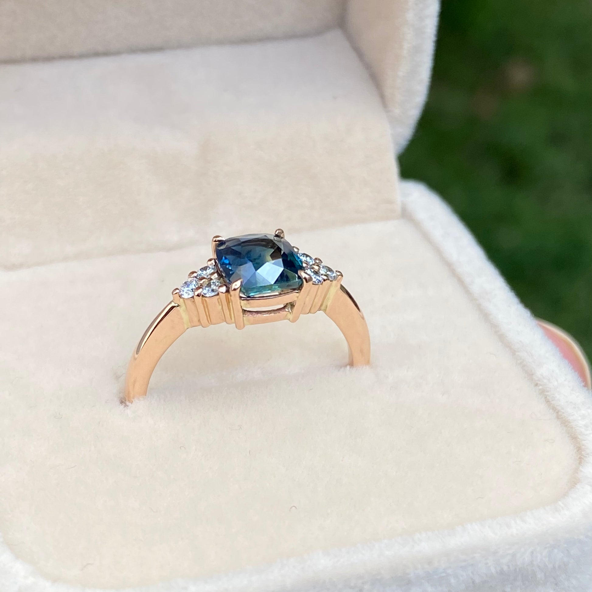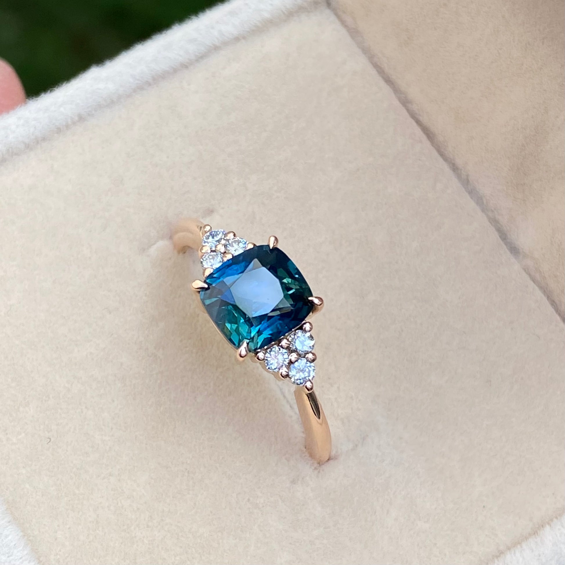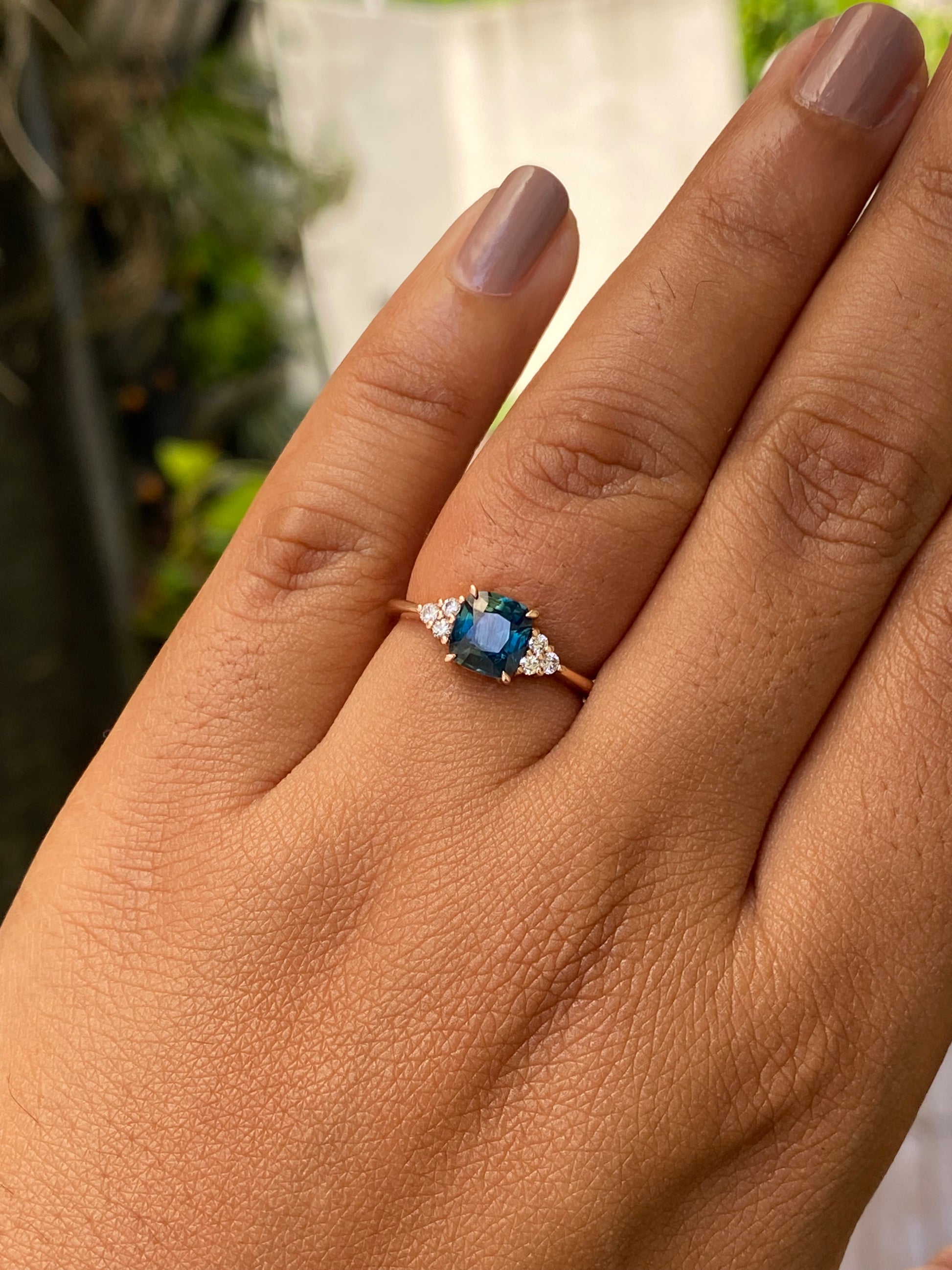 1.50 ct unheated Teal sapphire Ring , Cushion Cut Teal Sapphire Engagement Ring,