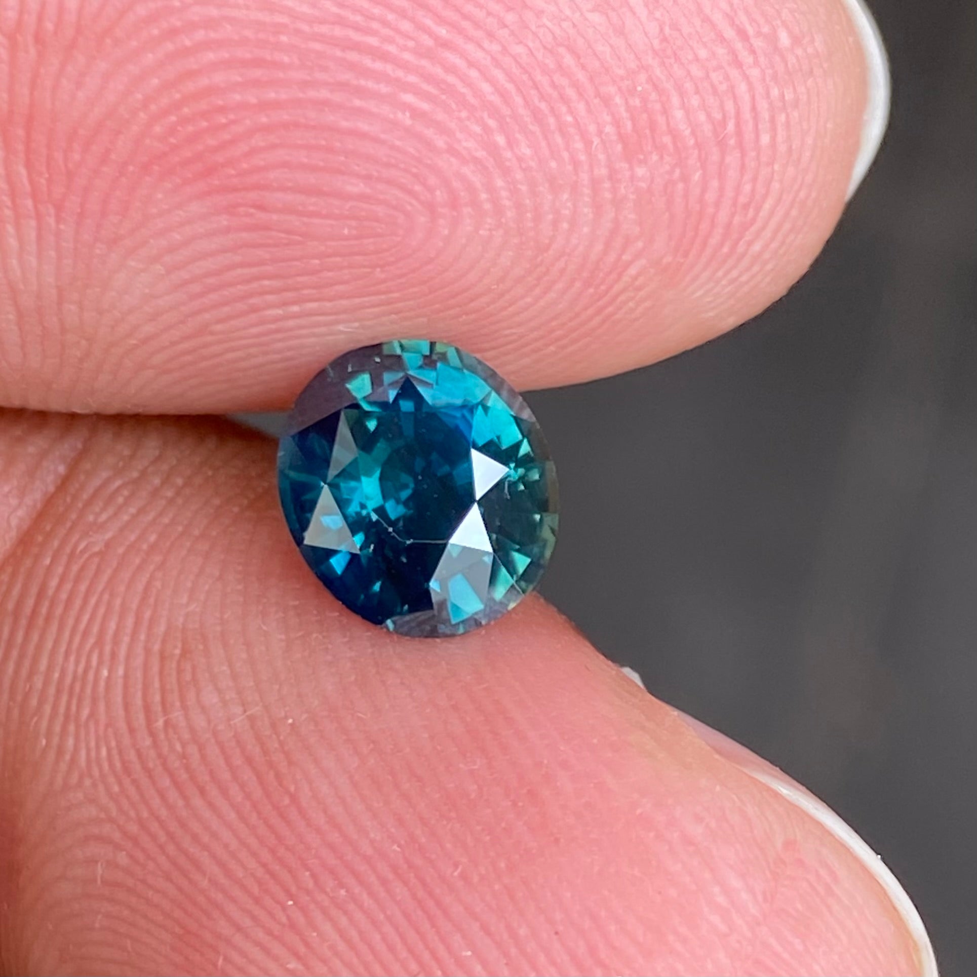 This beautiful 2ct oval teal sapphire is a preferred gemstone for an engagement ring due to its captivating bluish-green color. In engagement rings, teal sapphires are a unique and meaningful choice. This is a symbolize a harmonious union and commitment that goes beyond the surface, with the blend of blue and green hues representing a partnership of two unique souls.