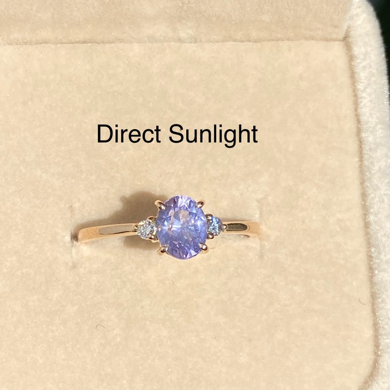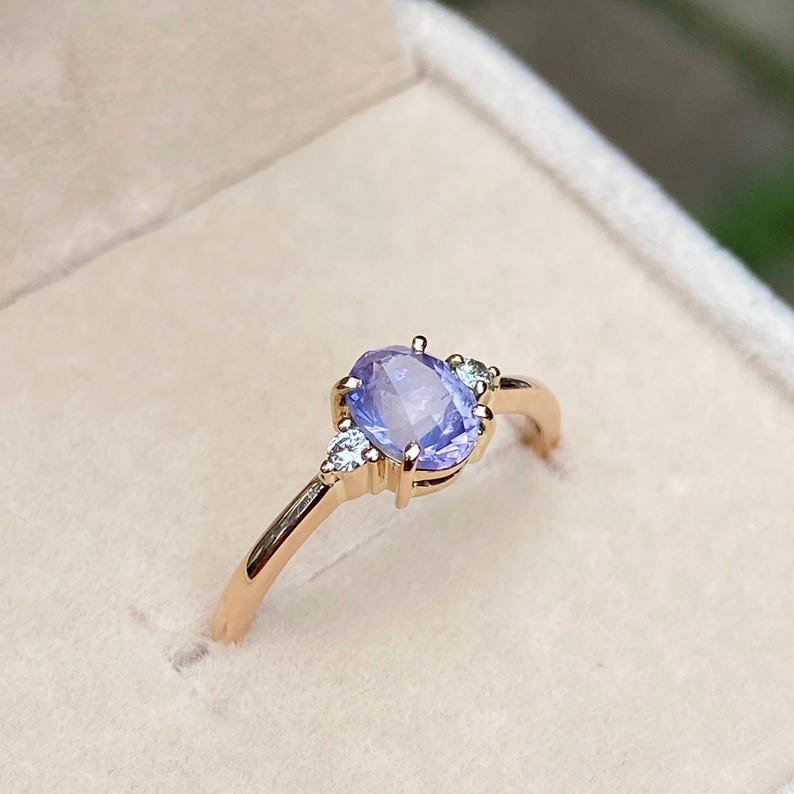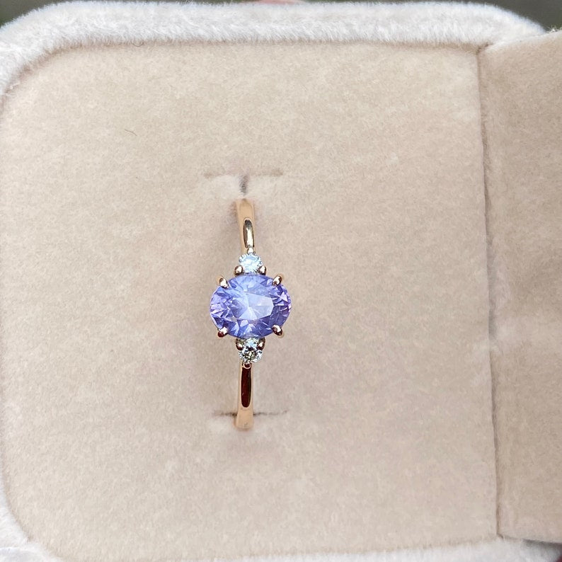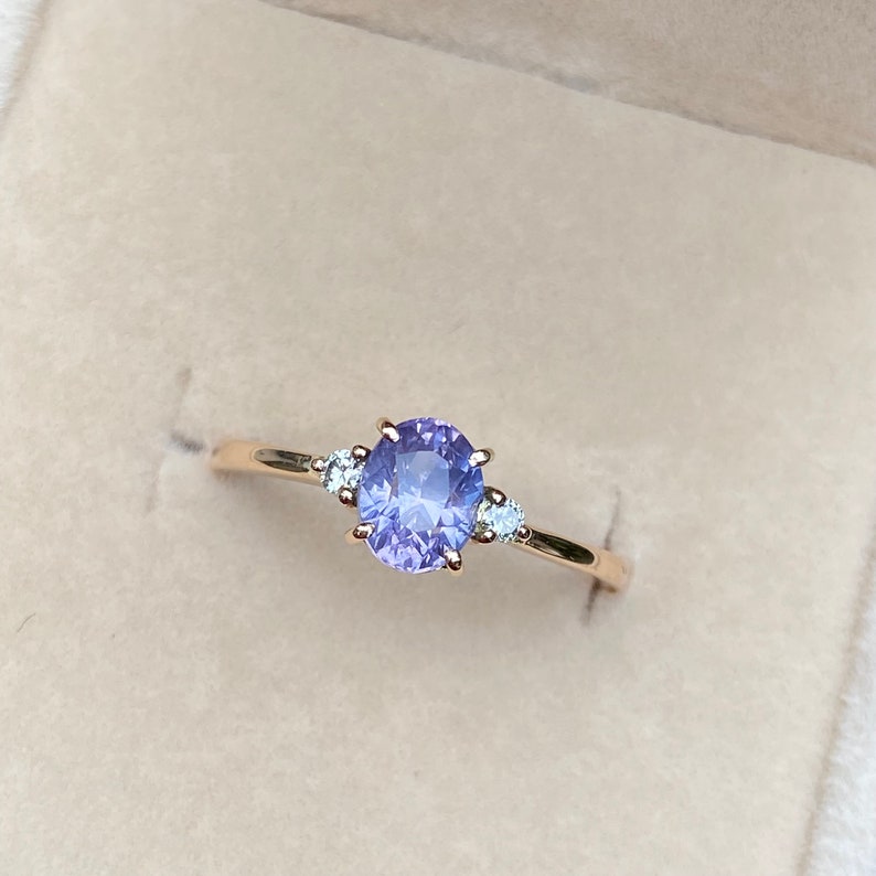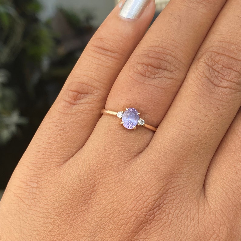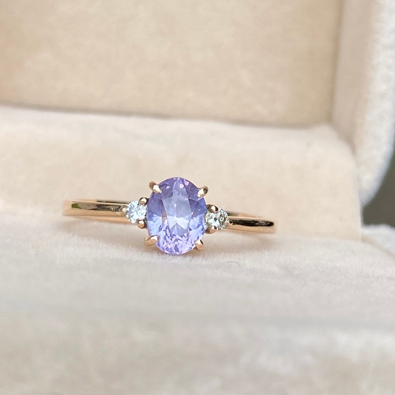One carat untreated untreated natural Lavender Sapphire Ring , Simple three stone Ring, Engagement Ring , Proposal Ring