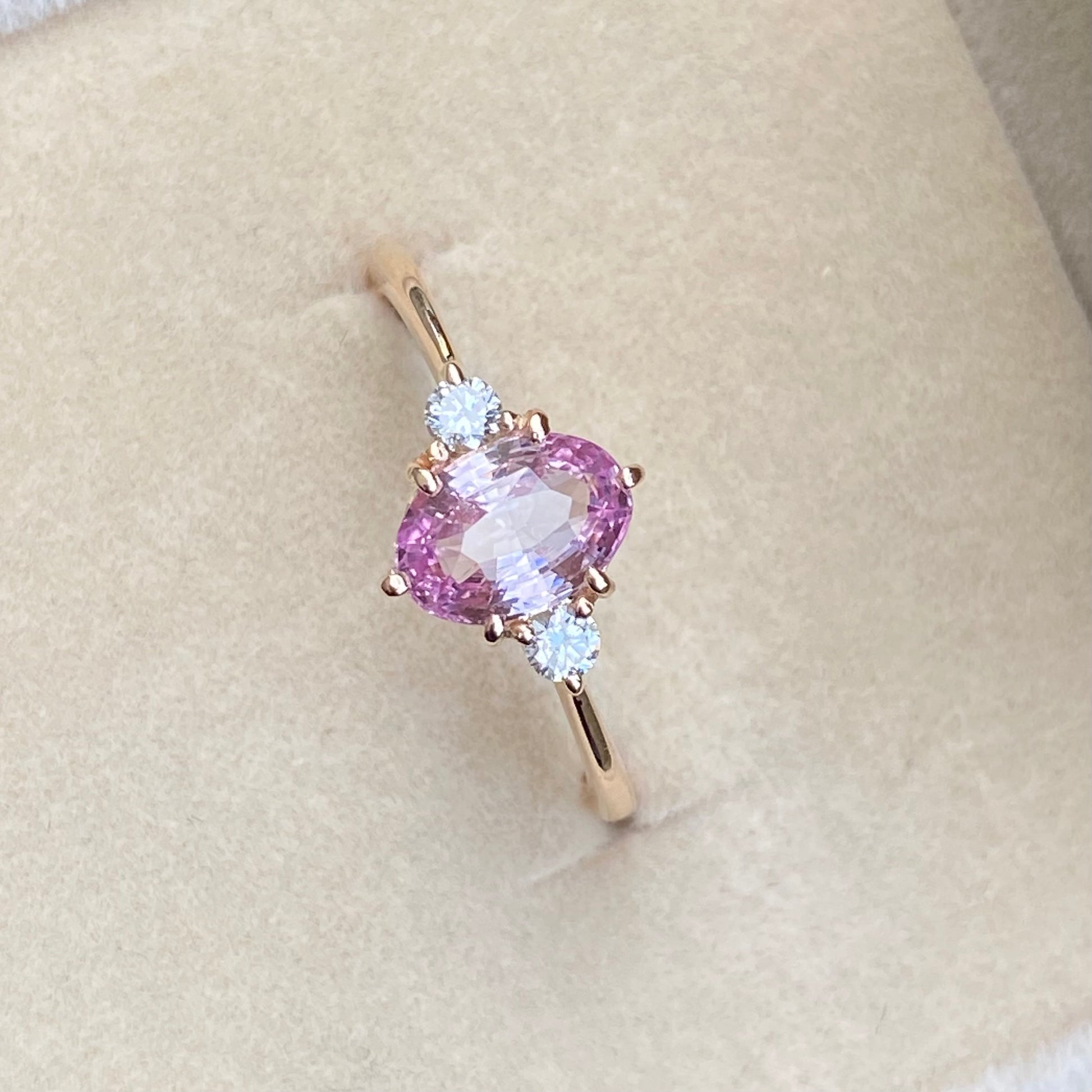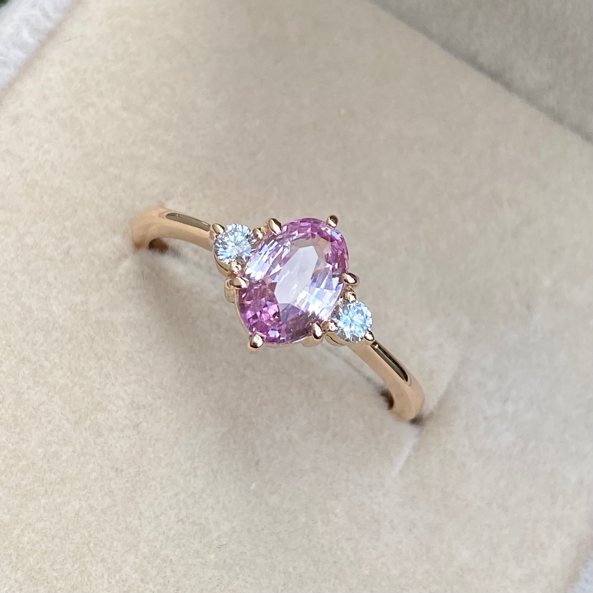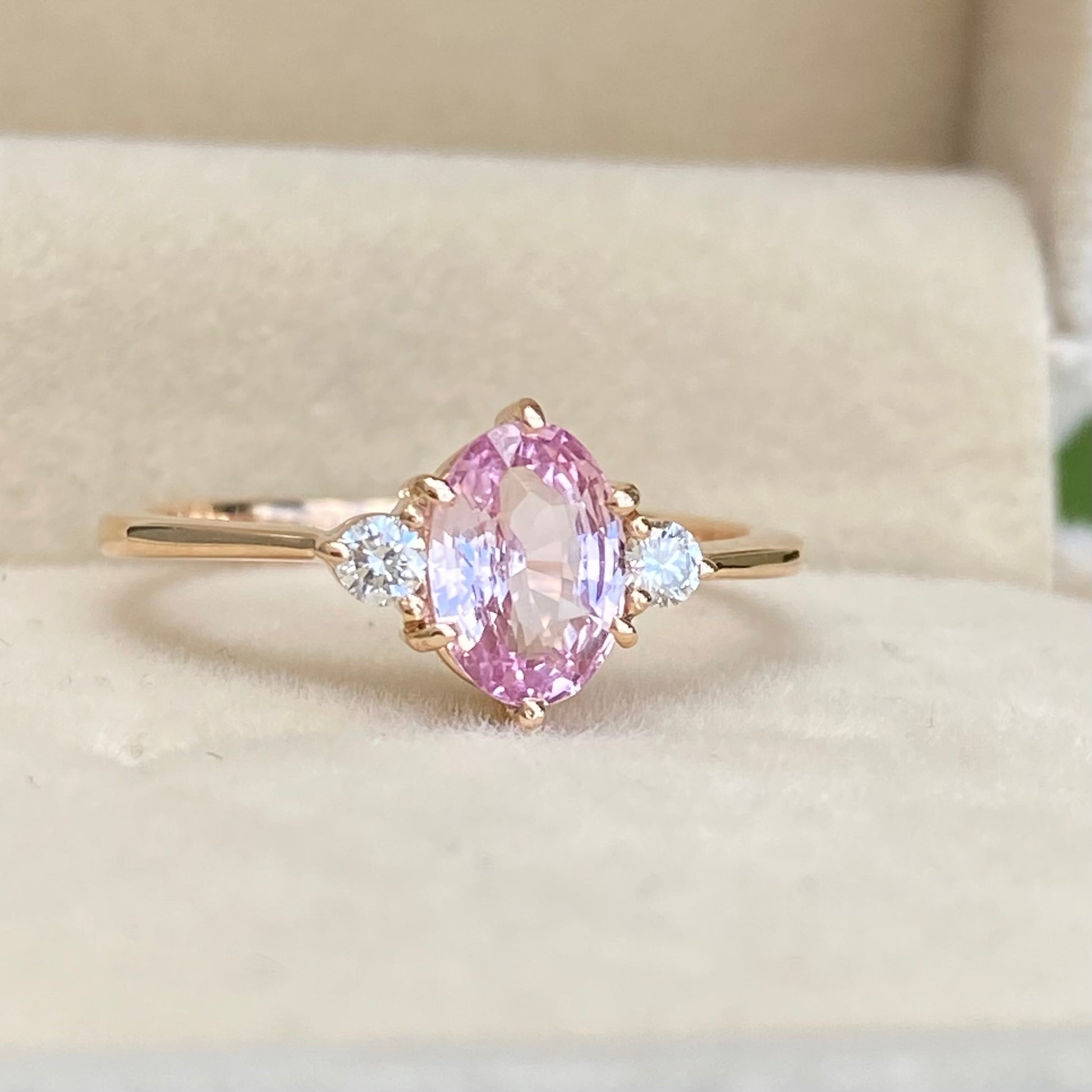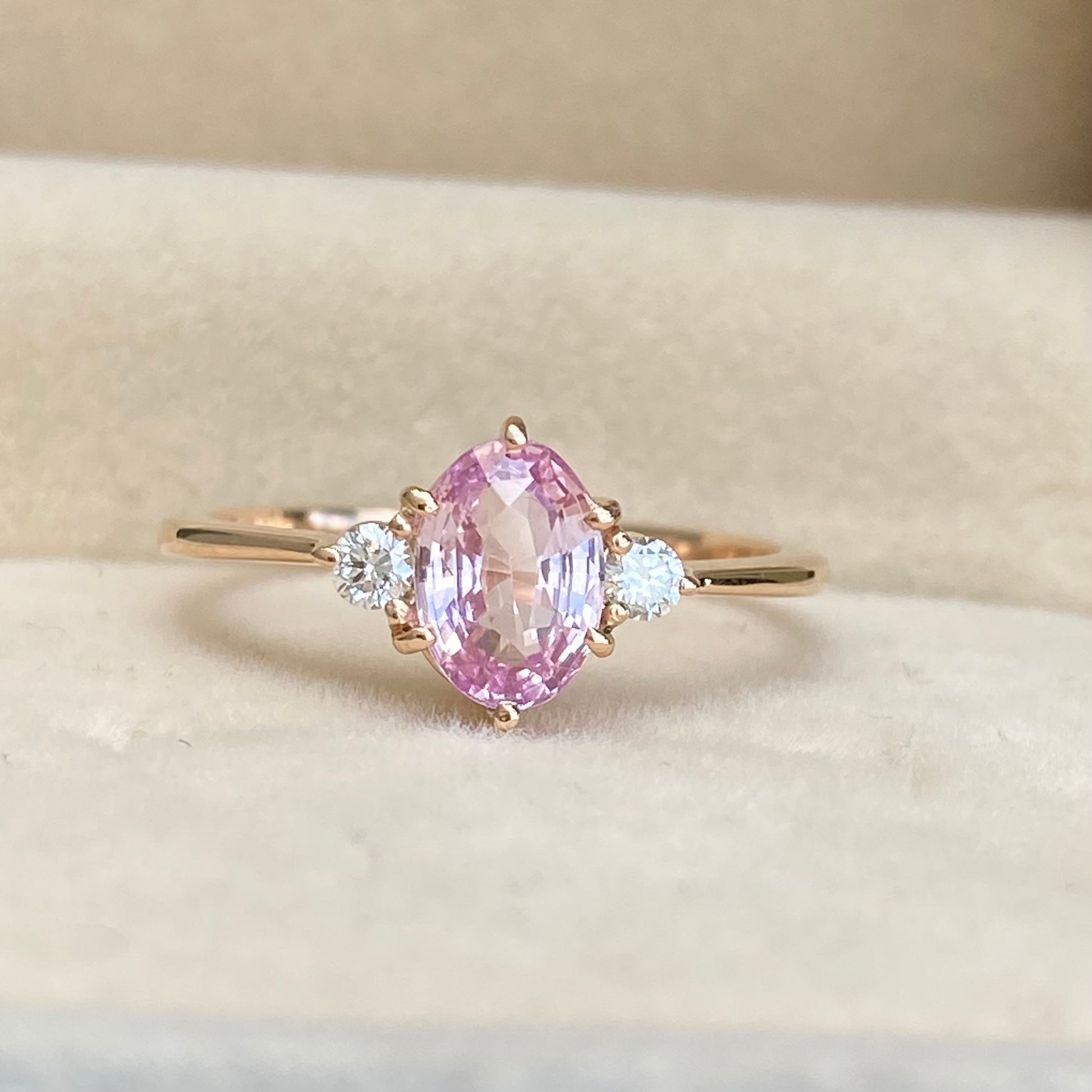 Light Pink Sapphire Diamond Engagement Ring 14K Rose Gold