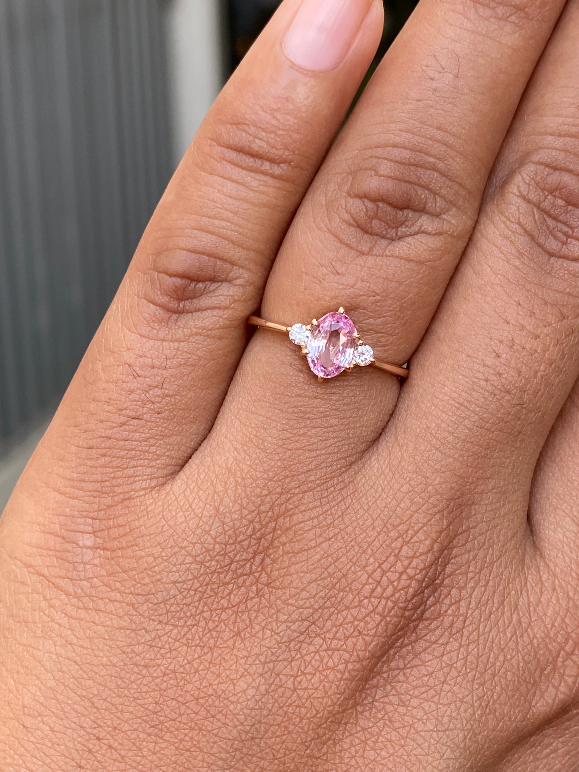 Blush Pink Sapphire Ring / Three stone Engagement Ring / Baby Pink Sapphire ring / Proposal Ring / Light Pink Sapphire, Unheated Pink Sapphire. A perfect Valentine's Day Gift
