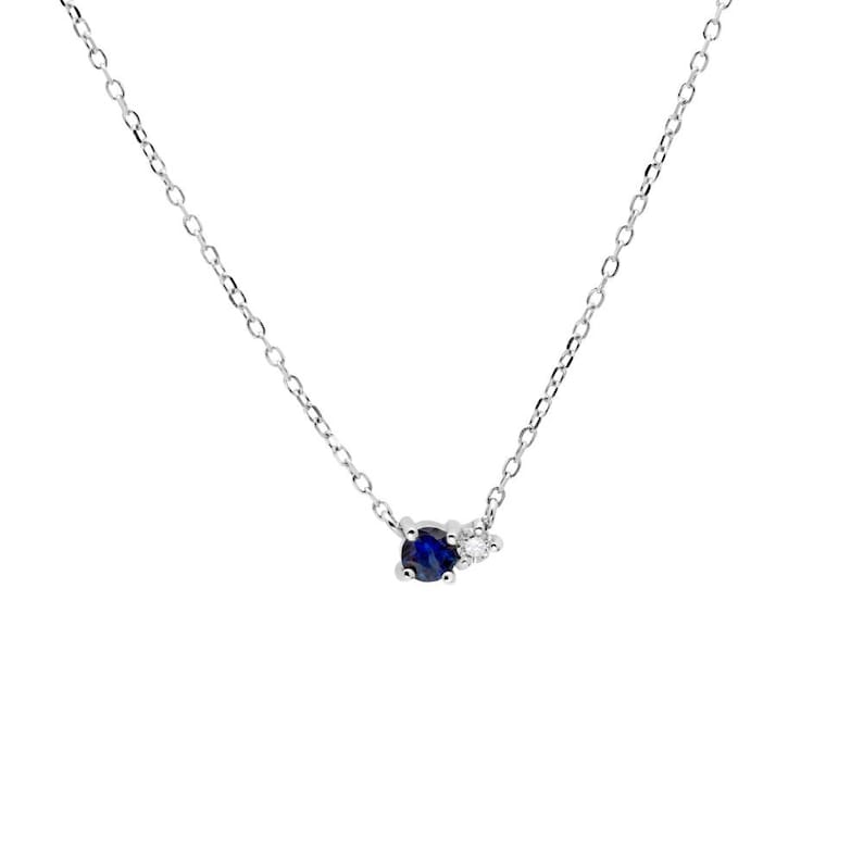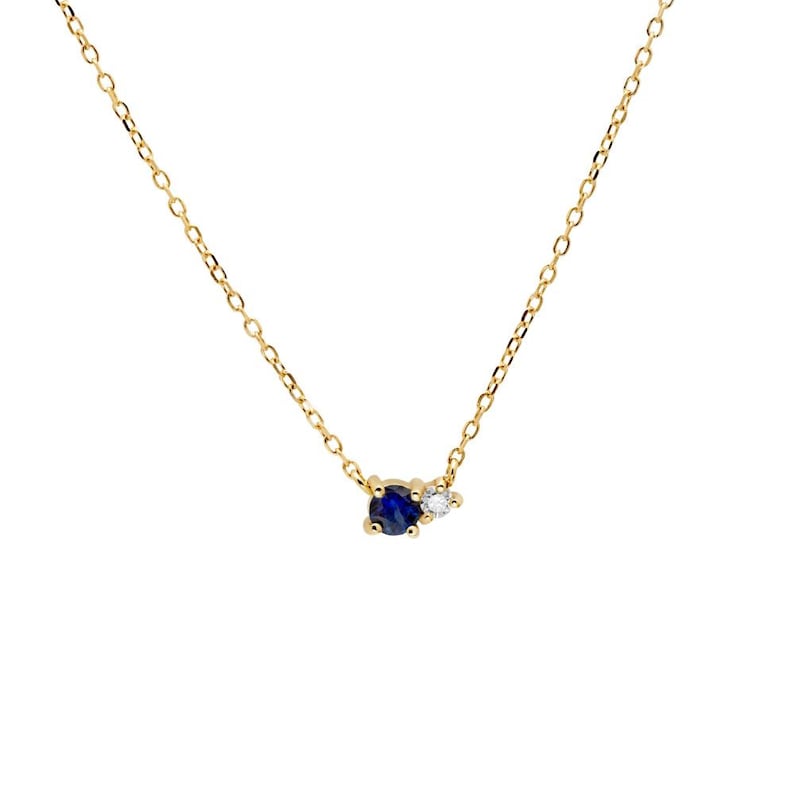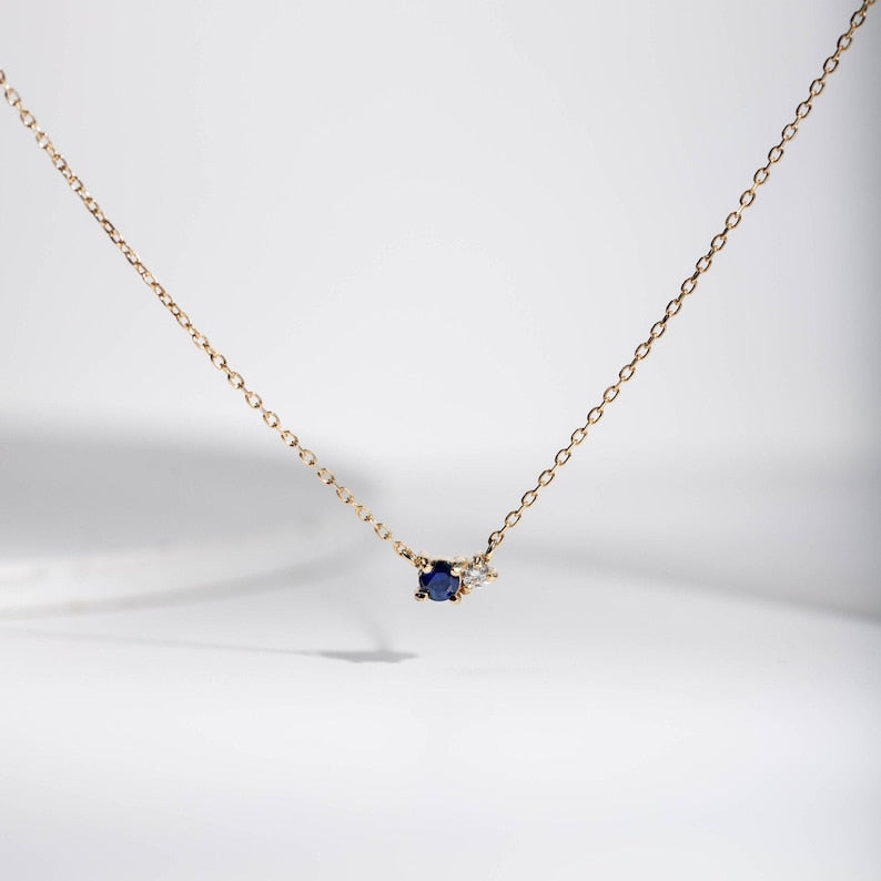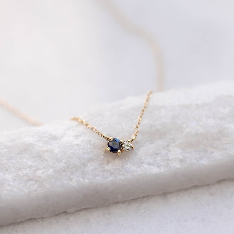 Blue Sapphire Diamond necklace in 14K solid yellow gold in cluster set. A minimal necklace for women with natural gemstones in cluster setting. A great birthday gift for her.