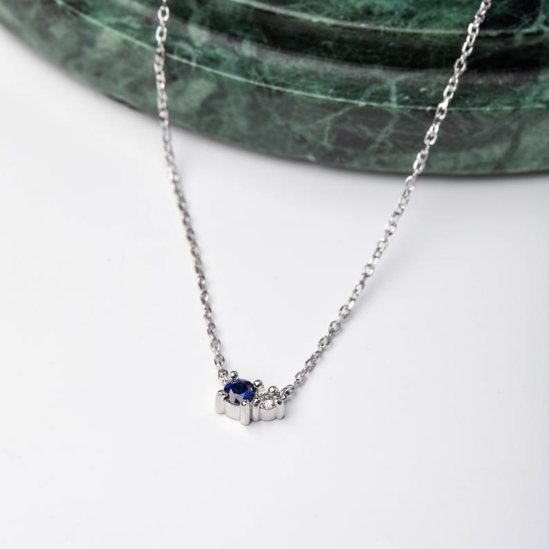 Natural Blue Sapphire & Diamond Necklace for Women 14K Solid Gold