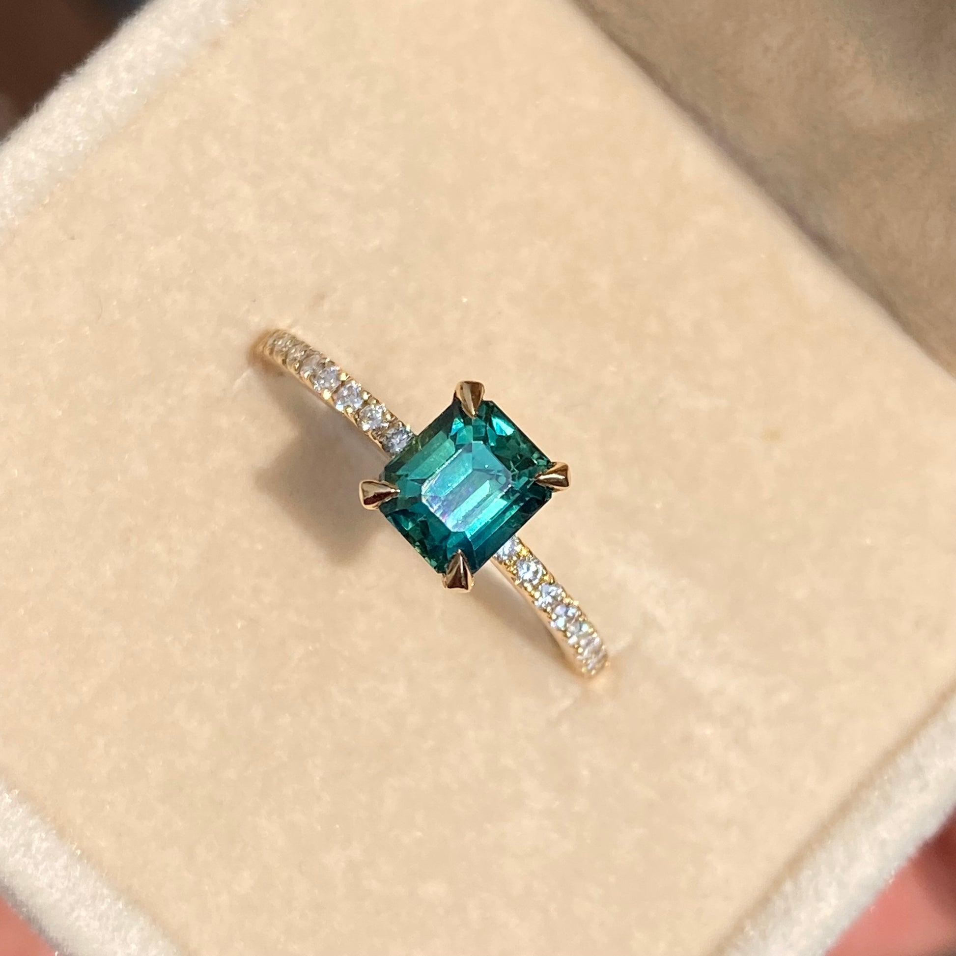 Teal Sapphire Ring, Dainty Blue Green Sapphire Ring, Diamond Pave band Engagement Ring, Customized Ring gift for her