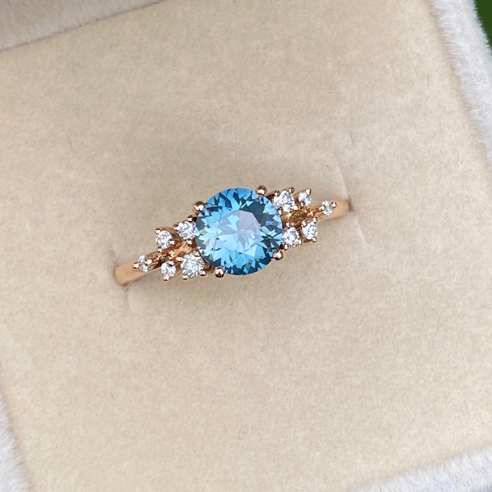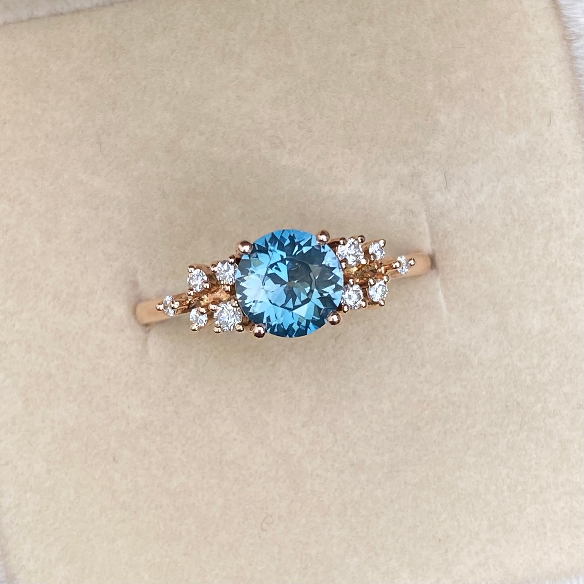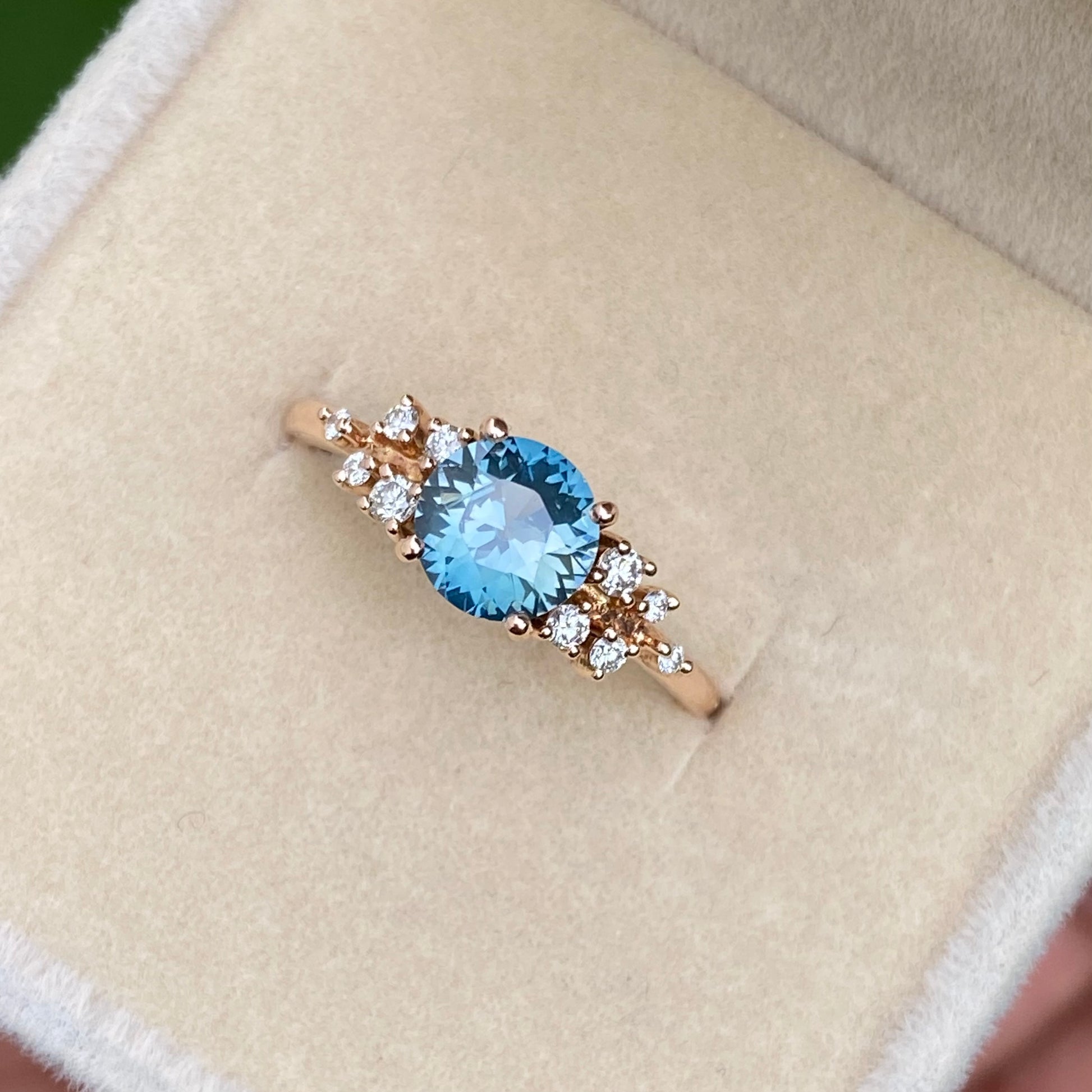 Pastel Blue Sapphire Engagement Ring, Round Blue Sapphire Ring 14K Rose Gold