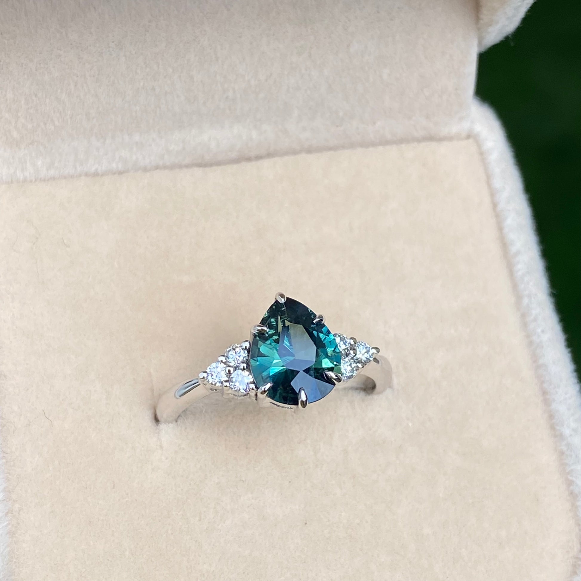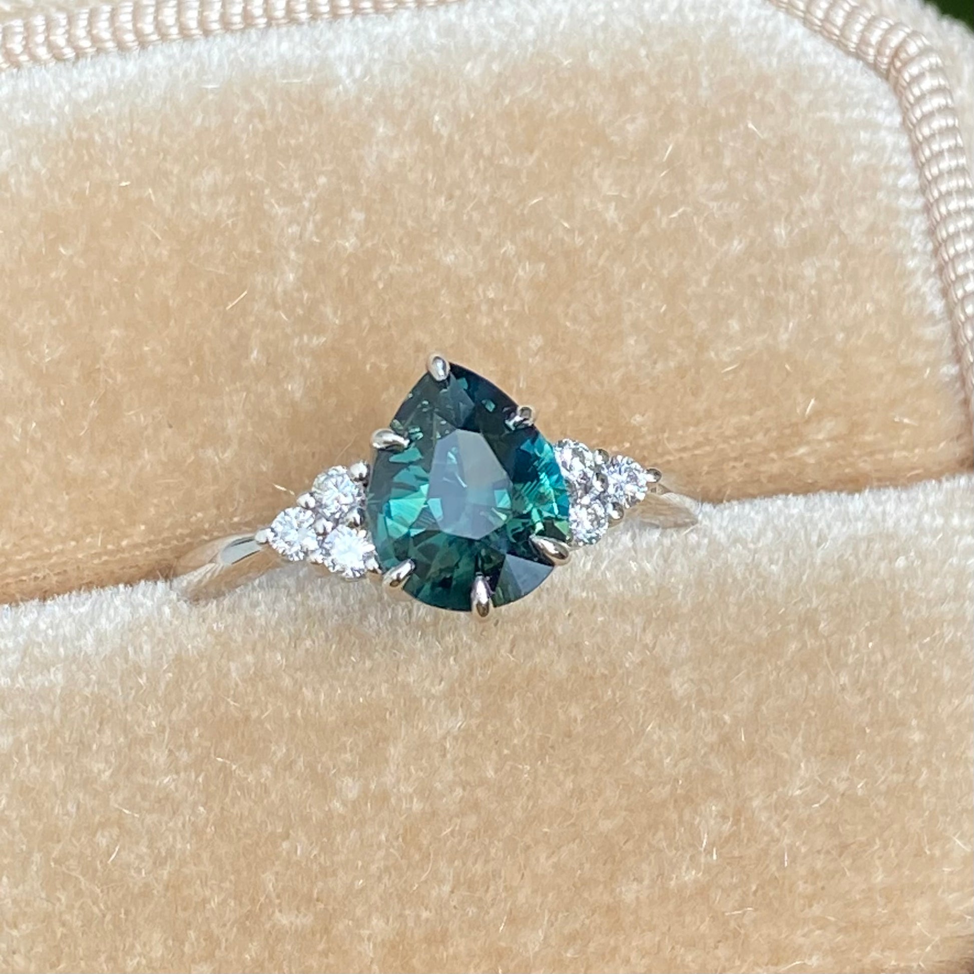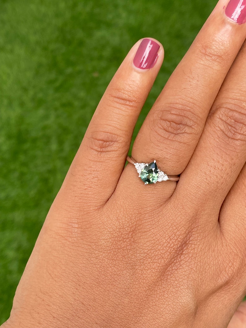 Pear Teal Sapphire Ring / Engagement Ring /Green Sapphire Ring, Peacock Sapphire Ring