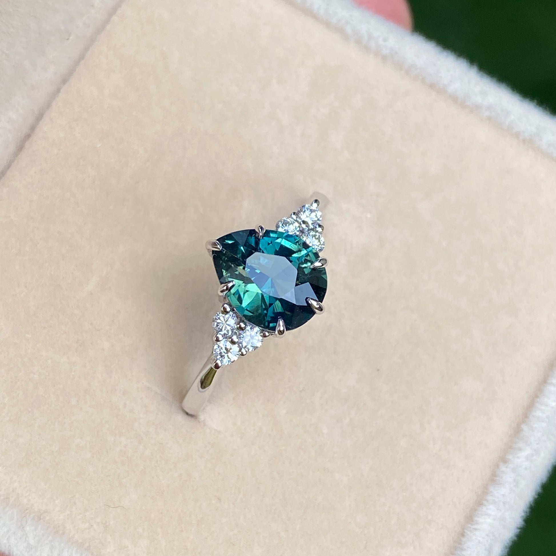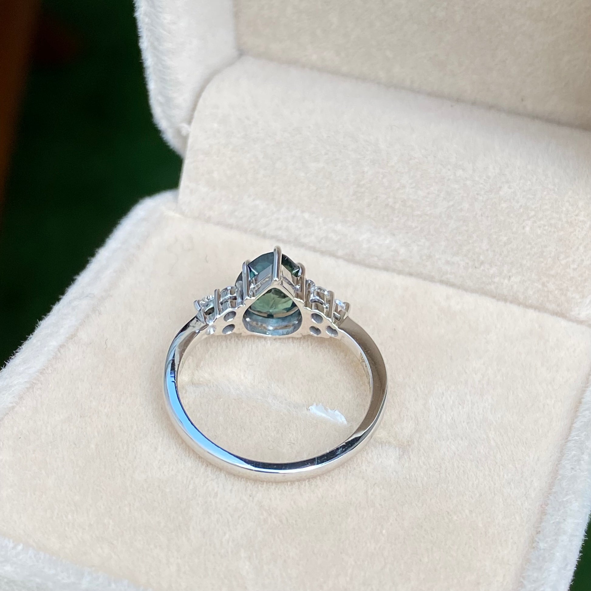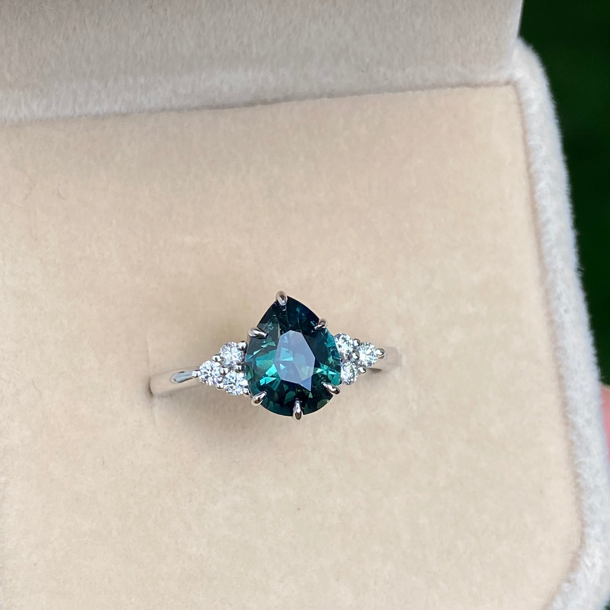 Pear Teal Sapphire Ring / Engagement Ring /Green Sapphire Ring, Peacock Sapphire Ring